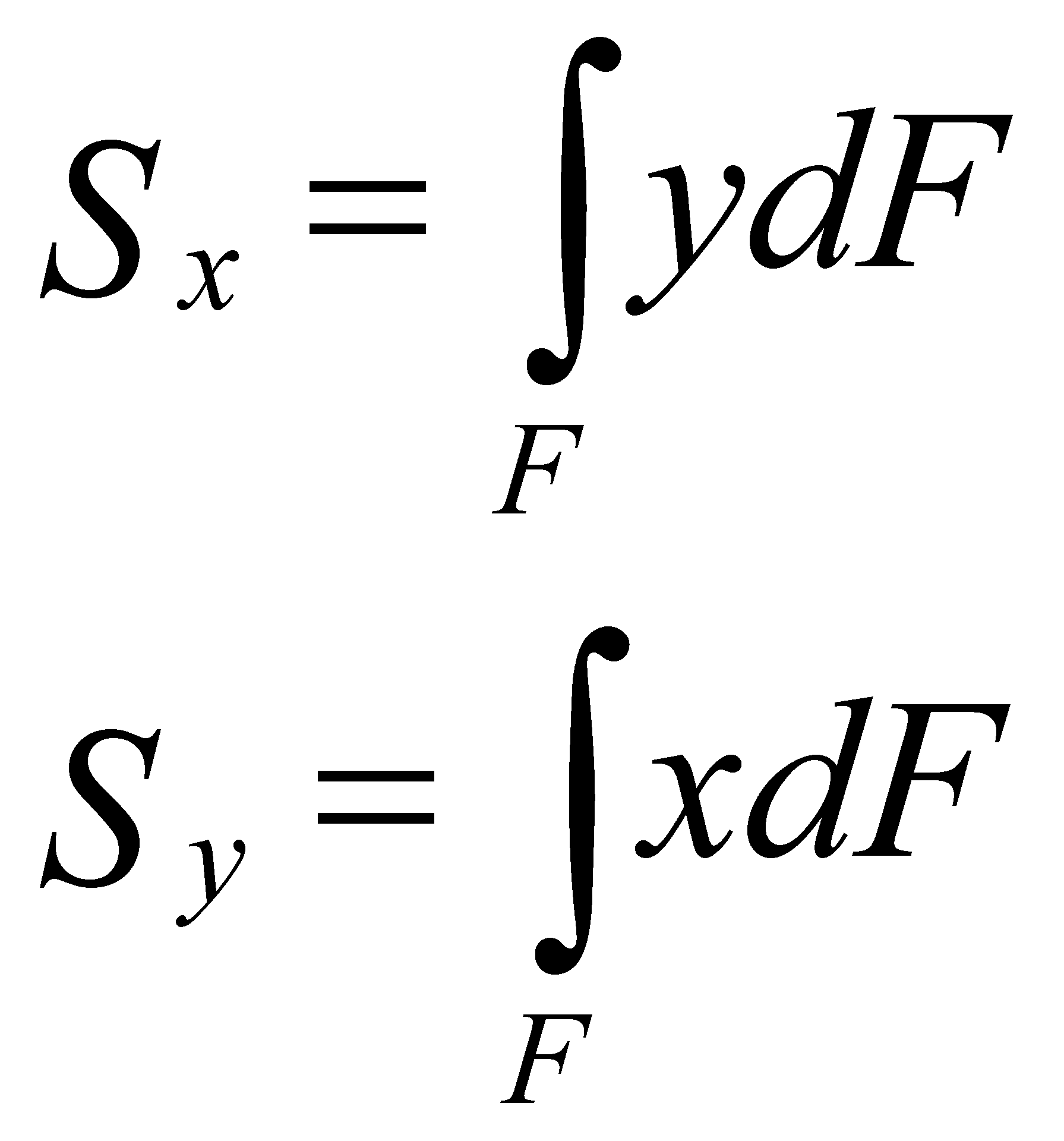 Статические моменты сечения Возьмем некоторое поперечное сечение бруса (рис. 1). Свяжем его с системой координат х, у и рассмотрим два следующих интеграла: Рис. 1