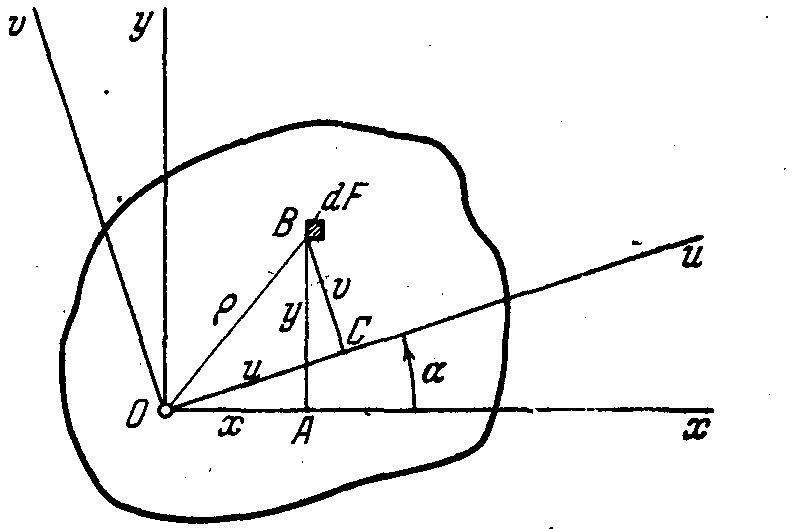 Посмотрим, как изменяются моменты инерции при повороте осей координат. Положим, даны моменты инерции некоторого сечения относительно осей