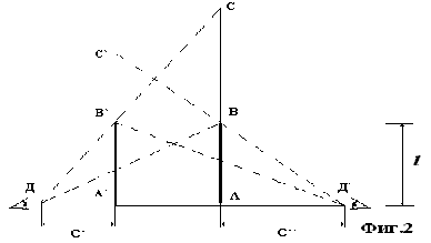 стержень A`B ` назовем системой отсчета K ` . В каждой из указанных систем отсчета наблюдатели могут производить отсчет угловых размеров стержней по отношению друг к другу. Для наблюдателя в Д система отсчета К (стержень АВ ) является собственной системой отсчета. Соответственно, для наблюдатенля в Д ` собственной системой отсчета будет система К ` (стержень A`B ` ). Однако, если наблюдатели не могут покинуть точки Д и Д ` (например, если R - большая величина), то априори они не смогут установить соотношения (4) и (5). Но пусть в точках A, B, A`, B` имеются зеркала. Тогда с помощью световых сигналов каждый из наблюдателей обнаружит, что выполняется следующее соотношение