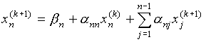 Решим систему (16) методом последовательных приближений. За нулевое приближение примем столбец свободных членов. Любое (k+1)-е приближение вычисляют по формуле