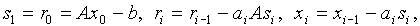 Метод Ланцоша. Для решения СЛАУ высокого порядка (1), матрица, коэффициентов которой хранится в компактном нижеописанном виде, наиболее удобным итерационным методом является метод Ланцоша [4], схема которого имеет вид: