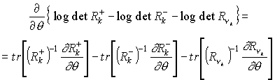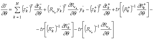 Для эффективного вычисления градиента функции максимального правдоподобия при использовании ККИФ в фильтрации данных, величины, входящие в выражение для