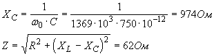 Можно сделать вывод, что при резонансной частоте X L » X C и величина импеданса цепи минимальна. Рисунок 2.