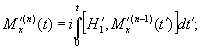 которому удовлетворяет зависящий от времени оператор Mў x (t) = е(iH 1ў t)M x е(–iH 1ў t) t . Решение этого уравнения может быть представлено в виде ряда Mў x (t) = M x + Mў (1) x (t) + Mў (2) x (t) + …+ Mў (n) x (t), отдельные члены, которого получаются методом индукции с помощью соотношения