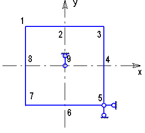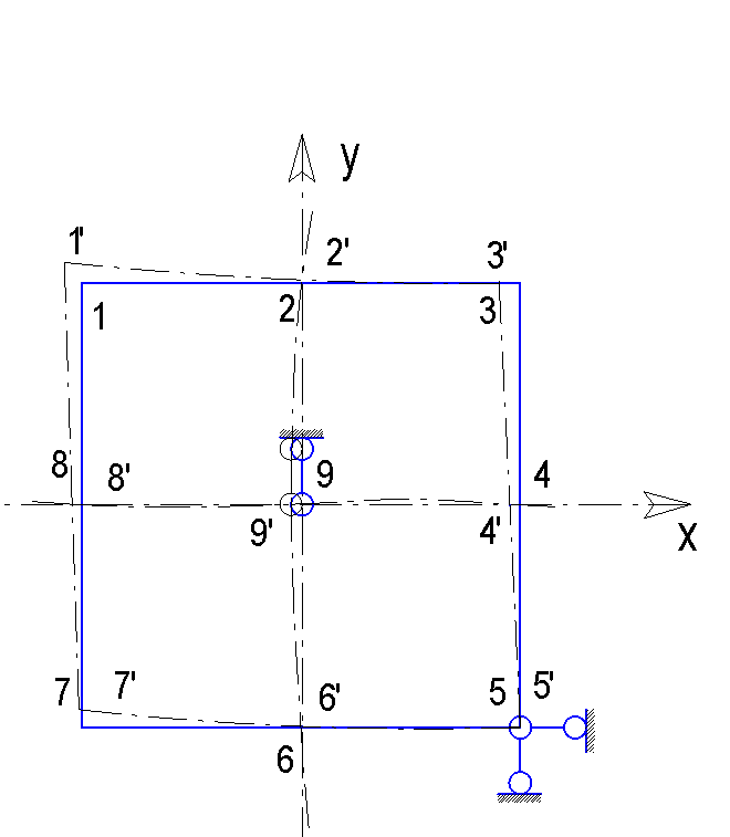 Покажем деформированное состояние пластины определив для этого перемещение в 9-ти точках.
