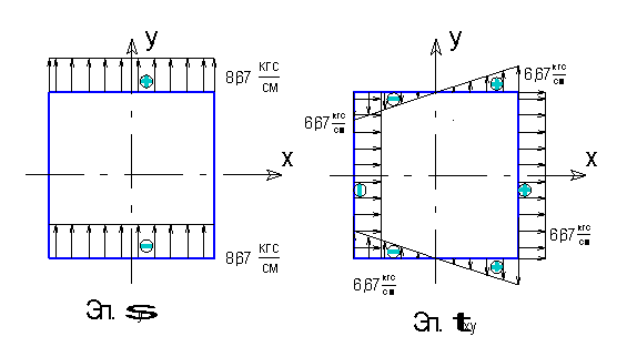 3.Строим эпюры напряжений для контура пластины согласно полученным аналитическим напряжениям.