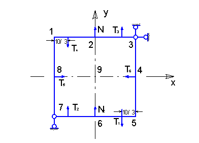 Из тела находящегося в плоском напряженном состоянии, выделена пластина, толщина которой 1 см, размеры в плане 20х20 см. Схема закрепления пластины.