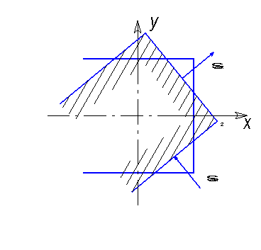 Уравненения равновесия: S х=0 -Т 5 +Т 6 =0 > 0=0 S y=0 Т 4 +Т 3 +Т 2 -Т 1 -N 2 +N 1 =0 > 0=0 S M=0 M (T 4 T 3 )=-M(T 2 T 1 ) > 0=0 удовлетворяется, т.е. пластина находится в равновесии. 5.Для точки А с координатами (5,-5) найти величины главных напряжений и положение главных осей для точки А. В этой точке напряжения в основных площадках. s х =0, s у =-1,33, t ху =3,33, Найдем главное напряжение по формуле: