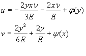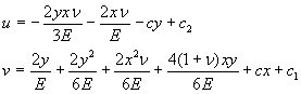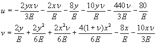 Окончательные выражения для функций перемещений u и v
