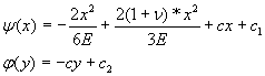 где с 1 и с 2 – постоянные интегрирования С учетом получения выражений для j (у) и y (х) компоненты перемещений имеет вид