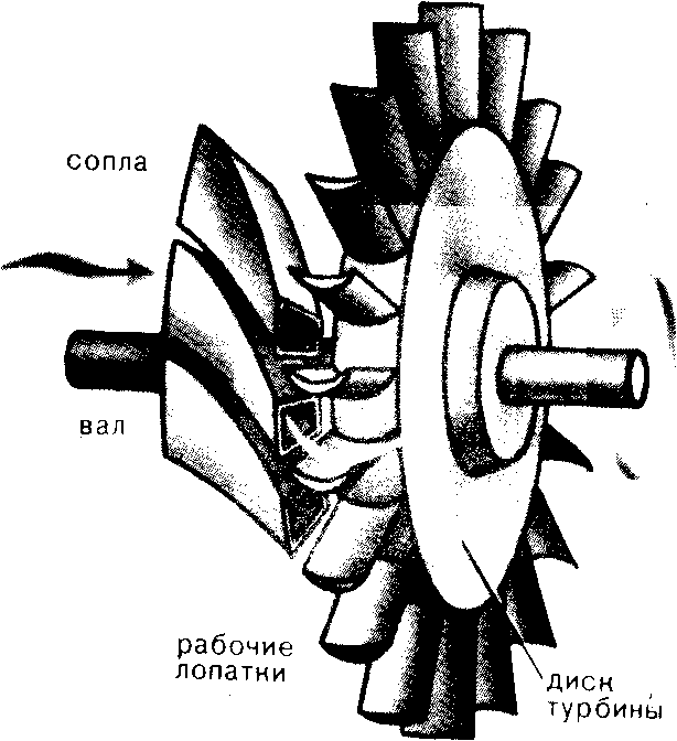 Наиболее экономичными являются крупные тепловые паротурбинные электростанции (сокращенно ТЭС). Большинство ТЭС нашей страны используют в качестве топлива угольную пыль. Для выработки 1 кВт-ч электроэнергии затрачивается несколько сот граммов угля. В паровом котле свыше 90% выделяемой топливом энергии передается пару. В турбине кинетическая энергия струй пара передается ротору. Вал турбины жестко соединен с валом генератора. Энергоблок мощностью Современные паровые турбины для ТЭС — весьма 1 млн. 200 тыс. кВт совершенные, быстроходные, высокоэкономичные машины Костромской ГРЭС. с большим ресурсом работы. Их мощность в одновальном исполнении достигает 1 млн. 200 тыс. кВт, и это не является пределом. Такие машины всегда бывают многоступенчатыми, т. е. имеют обычно несколько десятков дисков с рабочими лопатками и такое же количество, перед каждым диском, групп сопел, через которые протекает струя пара. Давление и температура пара постепенно снижаются. Из курса физики известно, что КПД тепловых двигателей увеличивается с ростом начальной температуры рабочего тела. Поэтому поступающий в турбину пар доводят до высоких параметров: температуру — почти до 550 °С и давление — до 25 МПа. Коэффициент полезного действия ТЭС достигает 40%. Большая часть энергии теряется вместе с горячим отработанным паром. По мнению ученых в основе энергетики ближайшего будущего по-прежнему останется теплоэнергетика на не возобновляемых ресурсах. Но структура ее изменится. Должно сократиться использование нефти. Существенно возрастет производство электроэнергии на атомных электростанциях. Начнется использование пока еще не тронутых гигантских запасов дешевых углей, например, в Кузнецком, Канско-Ачинском, Экибаcтузском бассейнах. Широко будет применяться природный газ, запасы которого в стране очень большие. Кстати, сейчас у нас на Карачаганаке строится газотурбинная электростанция мощностью 240МВт (6 блоков по 40 МВт каждый). Насколько мне известно, сейчас уже работают в полную силу два блока и подают электроэнергию для нашей Западно-Казахстанской области. К сожалению, запасы нефти, газа, угля отнюдь не бесконечны. Природе, чтобы создать эти запасы, потребовались миллионы лет, израсходованы они будут за сотни лет. Сегодня в мире стали всерьез задумываться над тем, как не допустить хищнического разграбления земных богатств. Ведь лишь при этом условии запасов топлива может хватить на века. Многие нефтедобывающие страны живут сегодняшним днем. Они нещадно расходуют подаренные им природой нефтяные запасы. Сейчас многие из этих стран, особенно в районе Персидского залива, буквально купаются в золоте, не задумываясь, что через несколько десятков лет эти запасы иссякнут. Что же произойдет тогда –, а это рано или поздно случится, – когда месторождения нефти и газа будут исчерпаны? Происшедшее повышение цен на нефть, необходимую не только энергетике, но и транспорту, и химии, заставило задуматься о других видах топлива, пригодных для замены нефти и газа. Особенно призадумались тогда те страны, где нет собственных запасов нефти и газа и которым приходится их покупать.