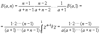 то есть при целых значениях аргумента гамма-функция превращается в факториал.Порядок которого на единицу меньше взятого значения аргумента.При n=1 в (2.4) имеем