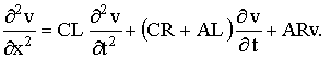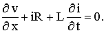 где R и L – сопротивление и коэффициент индуктивности, рассчитанные на единицу длины провода. Знак минус взят потому, что ток течет в направлении, обратном возрастанию v. Сокращая на