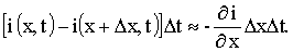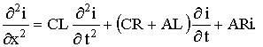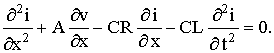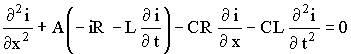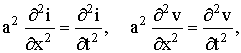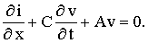 Уравнения (5) и (6)принято называть телеграфными уравнениями. Из системы уравнений (5) и (6) можно получить уравнение, содержащее только искомую функцию i (x, t), и уравнение, содержащее только искомую функцию v (x, t). Продифференцируем члены уравнения (6) по x; члены уравнения (5) продифференцируем по t и умножим их на С. Произведя вычитание, получим: