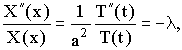 Из соотношения (14) получаем обыкновенные дифференциальные уравнения для определения функций X (x) и T (t)