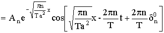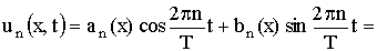 где Т – период, и взяв температурные волны, соответствующие каждому слагаемому, получим, что температура u (x, t) для любого x будет периодической функцией времени и ее n-я гармоника равна