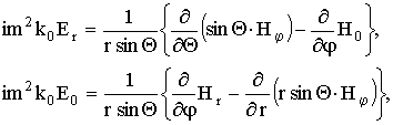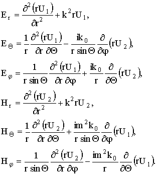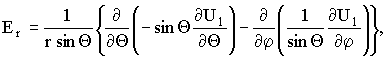 Падающее поле возбуждает в шаре внутреннее поле, а во внешнем пространстве – дифрагированное поле, причем все эти поля должны иметь оду и ту же временную зависимость, т.е. частоту. Произвольное электромагнитное поле будем представлять как суперпозицию двух типов колебаний. Первый тип назовем электрическими колебаниями и будем считать, что у этих колебаний радиальная составляющая магнитного поля во всех точках равна нулю: