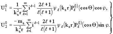 Представим теперь электрический и магнитный потенциалы падающей волны также в виде рядов по