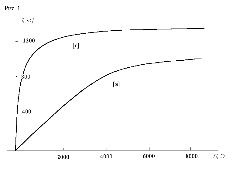 Измерение магнитострикции ферромагнетика с помощью тензодатчикаЦель работы: определение продольной магнитострикции никеля в зависимости от амплитуды напряженности магнитного поля. Теория. § 1 Введение Данная работа посвящена изучению поведения ферромагнетиков в магнитном поле. Хотя магнитное взаимодействие является малой поправкой к электрическим обменным силам, обусловливающим самопроизвольную намагниченность, тем не менее, они играют решающую роль во всем сложном комплексе явлений технического намагничивания. Поэтому выяснение физической природы магнитного взаимодействия в ферромагнетиках имеет не только теоретическое значение, но необходимо и для ясного понимания механизма тех физических процессов, которые обусловливают всю практическую ценность явления ферромагнетизма. Напомним, что ферромагнетиками называются вещества, в которых магнитные моменты ориентированы вдоль выделенного направления. Монокристаллы ферромагнетиков анизотропны в магнитном отношении. В качестве примера магнитокристаллической анизотропии на рис. 1 приведены кривые намагничивания I (Н) монокристалла кобальта, снятые вдоль гексагональной оси (ось с) и перпендикулярно к ней (ось а) . Как видно из рисунка, если магнитное поле H || c , то достаточно приложить поле в несколько сот эрстед для того, чтобы намагнитить кристалл до насыщения. При Н ^ с насыщение достигается только при Н ” 10 4 Э. Наиболее резко магнитная анизотропия, проявляется в кристаллах гексагональной симметрии (Со, Tb, Dy) . Из анализа кривых I(Н) , снятых по различным кристаллографическим направлениям, следует, что в ферромагнитных монокристаллах существуют направления, называемые “осями легкого намагничивания” (ОЛН) , и направления, называемые “осями трудного намагничивания” (ОТН) . Известно, что минимум свободной энергии магнитокристаллической анизотропии достигается, когда намагниченность ориентирована вдоль ОЛН. Для поворота I s из этих направлений требуется затрата определенной работы, которая приводит к росту энергии магнитной или магнитокристаллической анизотропии. Энергией магнитокристаллической анизотропии называют ту часть энергии кристалла, которая зависит от ориентации вектора намагниченности относительно кристаллографических осей.