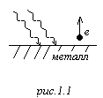 Вот, пусть мы имеем металл. Металл это, кстати, что такое? Это твёрдое тело, внутри которого имеются свободные электроны, которые могут свободно двигаться внутри этого тела. Именно металлы это те тела, в которых есть свободные электроны; не то, что в металлах это есть, а металлы – это такие вещества. Характерные свойства металлов (блеск) это свойство того, что в нём свободные электроны. Если на металл падает свет, то из металла вылетают электроны, это экспериментальный факт, был в своё время такой опыт, и явление называется фотоэффектом. Ну, прежде всего, чтобы начать обсуждать, почему они вылетают, давайте поймём, почему они не вылетают, если они там есть. Тоже, кстати, вопрос не праздный. Что такое металл? Металлы – это такие вещества, у которых при соединении атомов в решётку отскакивают валентные электроны, остаются ионы, которые стоят в узлах решётки, и, значит, мы имеем такую структуру: ионы с положительными зарядами, а между ними электроны, и эти электроны свободно сквозят через эту решётку. Почему электрон не вылетает, никаких стенок нет? Ответ простой: как только электрон вылетел, весь кусок (до этого был нейтральным) становится положительно заряженным, и он затягивает его обратно. Вроде бы мы ответили на вопрос, но не так-то просто!
