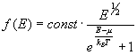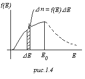 . Был бы УхвостФ у этой функции распределения, – электроны бы испарялись, и кусок был бы облеплен. Вот, между прочим, первое обстоятельство, которое говорит, что здесь что-то не то с нашими представлениями. Действительно, функция распределения по энергии электронов в металле имеет вид не такой, как на