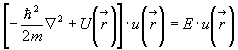 Потенциальная энергия выглядит, конечно, сложным образом: это потенциальные ямы в окрестности атомов, и её не только ядра создают, там и все электроны. Выражение для гамильтониана задать очень сложно, надо учитывать взаимодействие электронов между собой, взаимодействия с ядрами, взаимодействие ядер между собойЕ, но нам это не важно, нам важно одно – эта функция периодическая. Напишем уравнение на собственные значения гамильтониана, где функция имеет такой вид