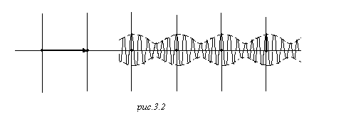 Мы сейчас можем понять тот эксперимент с частицами, который наблюдали в прошлый раз. Пусть у нас имеется пучок частиц с определённым импульсом, такой пучок частиц описывается функцией (