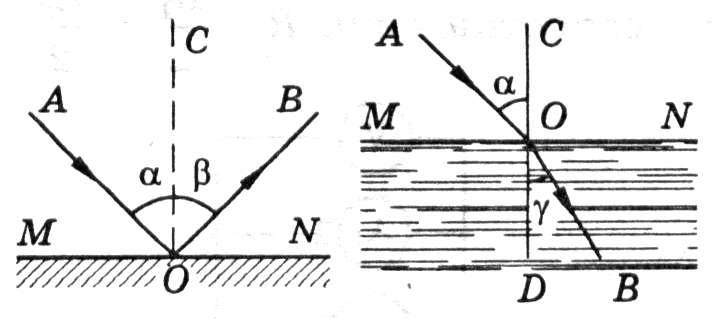 При падении света на границу раздела двух сред часть света отражается в первую среду, а часть проходит во вторую среду, если она прозрачна, изменяя при этом направление своего распространения, т.е. преломляется.