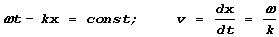 ќто так называемаЯ фазоваЯ скорость. Ќо предположим, мы хотим измерить скорость распространениЯ волны. ‚ообще говорЯ, длЯ этого создаетсЯ некоторый импульс (группа волн, волновой пакет, цуг) и измерЯетсЯ времЯ прохождениЯ им некоторого расстоЯниЯ. Ќо тогда мы определим скорость волны как скорость перемещениЯ не точки с постоЯнной фазой, а точки с постоЯнной амплитудой (подчеркнутаЯ группа сомножителей в выписанном выражении) :