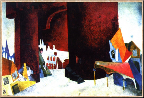 Эскиз декораций к драме Э. Штуккена и А. В. Луначарского "Бархат и лохмотья". 1927. Акварель