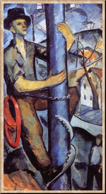 Первые же работы Русакова обнаружили редкий дар колориста; не менее очевидна ориентация на французскую школу (П. Сезанн, А. Матисс, А. Марке). В ранний период творчества он обращается к тематической картине, пишет большие холсты с фигурами в полный рост ("Женщина с коляской", 1927; "Монтер", 1928), но эти опыты не получили дальнейшего развития. Пейзаж, портрет, натюрморт - вот излюбленные жанры художника. Он ограничивается близким миром, будь то круг родных и друзей, окрестность мастерской или предметы, что всегда под рукой ("Женщина с курицей", 1930; "Портрет сына", ок. 1933; пейзажи Петроградской стороны 1930-х гг.). В сущности, единственным жанром, к которому тяготел Русаков, был жанр живописной лирики. В годы войны художник оставался в Ленинграде, продолжал работать и экспонировался на блокадной выставке 1943 г. Блокадные пейзажи принадлежат к числу лучших его произведений.