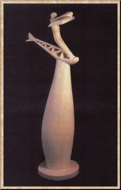Скульптор И. М. Чайков любил ставить себе необычные, казалось бы, невозможные для его искусства задачи. Скульптура статична. Трехмерная и массивная, она должна иметь прочную опору. Устойчивость - непременное техническое условие ее существования. Но если хочется изобразить в ней прыжок? Или полет? Вылепить движущегося в толще воды пловца? Скульптор упрямо возвращается к подобным "нескульптурным" темам.