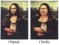 Пример некорректного использования произведения искусства Статья 8 Закона признает неэтичной рекламу, которая: “… порочит объекты искусства, составляющие национальное или мировое культурное достояние” . Примеров использования шедевров живописи и скульптуры в рекламе более чем достаточно. Однако очень сложно провести грань между правомерным использованием шедевра (то есть таким, которое не порочит объект искусства) и наглым надругательством над творением великих мастеров. Для того, чтобы уловить это различие, можно обратиться к толковому словарю русского языка С. И. Ожегова и Н. Ю. Шведовой, в котором одно из значений слова “порочить” трактуется как “осуждать, чернить чью-либо работу” . Осуждение — это некий вид отрицательной оценки творения, то есть выражение чьего-либо мнения по поводу объекта. А “чернить чью-либо работу” означает испачкать ее, опорочить искажением. Подтверждение этой позиции содержится в Законе РФ “Об авторском праве и смежных правах” , который в п. 1 статьи 15 представляет автору “право на защиту произведения, включая его название, от всякого искажения или иного посягательства, способного нанести ущерб чести и достоинству автора” . Выводом из вышесказанного служит предположение о том, что если сам объект мирового искусства не изменен, то нет и нарушения закона.