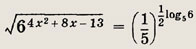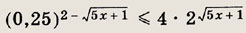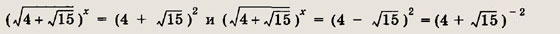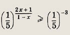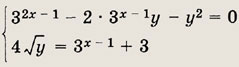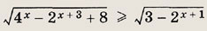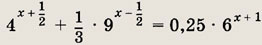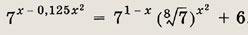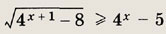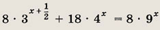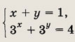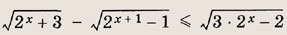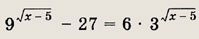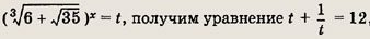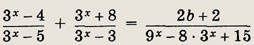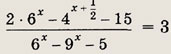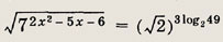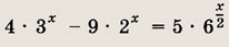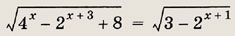 Решите уравнения 81—108, сводя их к квадратным после преобразований и подходящей замены переменной: Задание 81. 4x - 10 • 2x-1 =24 Решение: Вводя замену 2x = t > 0, получаем уравнение t2 - 5t - 24 = 0, откуда t = -3 и t = 8. Первое значение не удовлетворяет неравенству t > 0, а второе дает уравнение 2x = 8, т. е. х = 3. Ответ: 3 Задание 82. 92x+4 + 4 =26 • 32x+3 + 3 Ответ: -1 Задание 83.