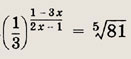 Задание 13. 3х-1 = 182x • Зх+1 • 2-2x Решение: Так как 182x = 344x • 22x, то из исходного уравнения получается уравнение 3x-1 = 35x+1, откуда