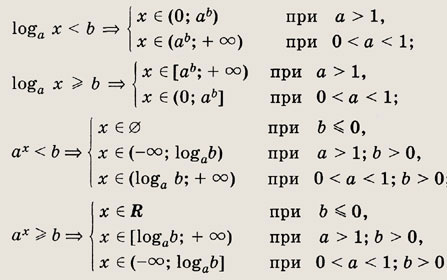 — любые действительные числа, то 1) а° = 1; 2) 3) 4) 5) 6) Логарифмом положительного числа b по основанию а (а > 0; а # 1) называется показатель степени, вкоторую нужно возвести основание а, чтобы получить b. Обозначение: logab (Iog10 b = lg b, logeb = In b). Определение логарифма записывается в виде равенства alogab = b которое называется основным логарифмическим тождеством. Из этого тождества и свойств степени вытекают следующие свойства логарифмов: 1) 2) 3) 4) Эти равенства справедливы для любых чисел b, b1, b2> 0; а, с > 0 и не равных единице, любого Отдельно отметим, что loga х2 = 2loga| x|. Наконец, из определения логарифма вытекает формула решения простейшего логарифмического уравнения: