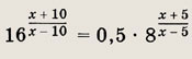 Решение: Так как 16 = 24, 0,5 = 2-1 и 8 = 23, то уравнение можно представить в виде