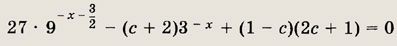 Решение: Введем обозначение 3-x = t > 0 и перейдем к уравнению t2 - (с + 2)t + (1 - с)(2с + 1) = 0, корни которого t1 = 2с + 1 и t2 = 1 - с. Уравнение имеет единственное решение, когда t1 и t2 имеют разные знаки, т. е.