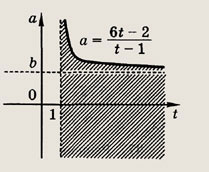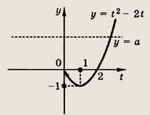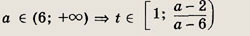 и рассмотрим полученное неравенство (а - 6)t < а - 2. На координатной плоскости (t; а) изобразим области, координаты точек которых удовлетворяют этому неравенству. Границы этих областей определяются соотношениями t = 1 и (а - 6)t — а - 2 или