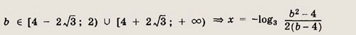 Решение: Исходное неравенство сводится к системе неравенств первое из которых выполняется для любых х € R, а для двух других это условие будет реализовано при значениях b, удовлетворяющих следующей системе неравенств: