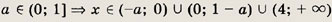 знак. Границы областей определяются соотношениями x + 1 = 0, х - а = 1, х -
