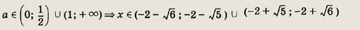 плоскости (х; а) изобразим области, в которых левая часть неравенства сохраняет