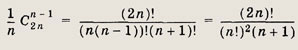 Так как это биномиальные коэффициенты, то они являются целыми числами. Далее, так как два последовательных натуральных числа n и n + 1 взаимно простые, то число п должно делить без остатка С2nn-1 . Тогда получаем, что число