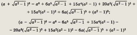 Сложив эти равенства, в правой части получим 2[a6 + 15а4(a2 - 1) + 15а2(а2 - 1)2 + (а2 - 1)3] = 2(32а6 - 48а4 + 18а2 - 1). Ответ: a) 64а6 - 96a4 + З6а2 - 2 Задание 46. В разложении