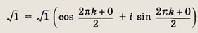 Решение: Так как 1 = l(cos 0 + i sin 0), то