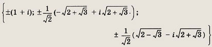 — арифметический корень n-й степени из действительного числа |z|. На комплексной плоскости корни n-й степени представляют собой вершины правильного n-угольника. Вычислите значения корней и изобразите их на комплексной плоскости (155—166): Задание 155.