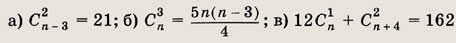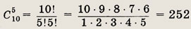(Отметим, что это (k + 1)-e слагаемое в правой части бинома.) Найдите следующие числа: С50 , С51 , С52 , С72 , С152 , C1514 , C1515 , C108 Ответ: 1; 5; 10; 21; 105; 15; 1; 45