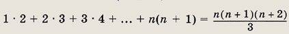 данного равенства при n = 1, имеем 1 • 4 = 1(1 + 1)2 — верное равенство. 1 • 4 + 2 • 7 + ... + k(3k + 1) = k(k + 1)2. Положим n = k + 1. Тогда 1 • -4 + 2 • 7 + ... + k(3k + 1) + (k + 1)(3k +4) = k(k + 1)2 +(k + 1)(3k + 4) = k3 + 2k2 + k + 3k2 + 7k + 4 = k3 + 5k2 + 8k + 4. Разложим последнее выражение на множители. Число k = -1 является корнем этого многочлена. Разделим полученное выражение на k + 1: