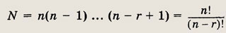 где индекс i1 может принимать n различных значений, индекс i2 — (n - 1) значение, ... , индекс ir — (n - r + 1) значение. Число различных выборок