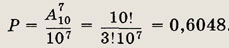 О т в е т: 0,1. 2. К перрону подали состав из 10 вагонов. За час до его отправки подошел первый пассажир и сел в один из вагонов. Через 5 мин подошел второй пассажир и сел наугад в один из вагонов. Через 5 мин подошел третий пассажир и, снова наугад, сел в один из вагонов и т.д., всего подошли 7 пассажиров. Какова вероятность того, что все они сели в разные вагоны? Так как общее число исходов опыта (пассажиры садятся в вагоны) равно 107, а число благоприятных исходов (все пассажиры сели в разные вагоны) равно А107, то искомая вероятность